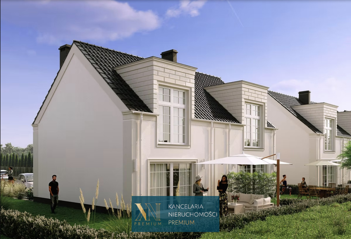 Na całości zastosowane zostanie ogrzewanie podłogowe, któremu ciepło dostarczać będzie pompa ciepła Viessmann. Duże przeszklenia ze szprosami zagwarantują świetne doświetlenie domu oraz jego niebanalny charakter. Na parterze w standardzie zamontowane zostaną rolety elektryczne. Salon z kuchnią to ponad 30 m2 ustawnej przestrzeni, z możliwością jej oddzielenia. Nadto toaleta i hol z miejscem na dużą szafę. Oczy cieszyć będzie już zagospodarowana przestrzeń ogródka w postaci trawy z rolki oraz nasadzeń od frontu w granicy działki. Podjazd i miejsca postojowe z kostki brukowej. Na piętrze dwie przestronne sypialnie oraz łazienka. Dach zostanie ocieplony pianą.