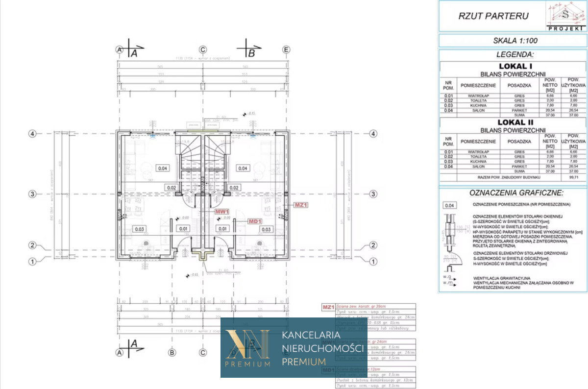 Projekt składający się z trzech budynków jednorodzinnych dwulokalowych - łącznie 6 lokali mieszkalnych, każdy o powierzchni 77 m². Lokale są dwupoziomowe - parter + poddasze użytkowe, zaprojektowane z myślą o komforcie i funkcjonalności.