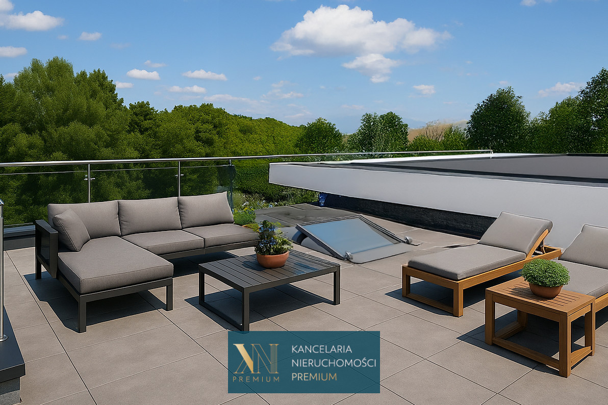 - taras dachowy z widokiem na zieleń Borka, ok 30m²