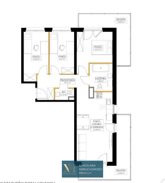 ✓ dwa duże balkony (ok. 10 m² każdy)