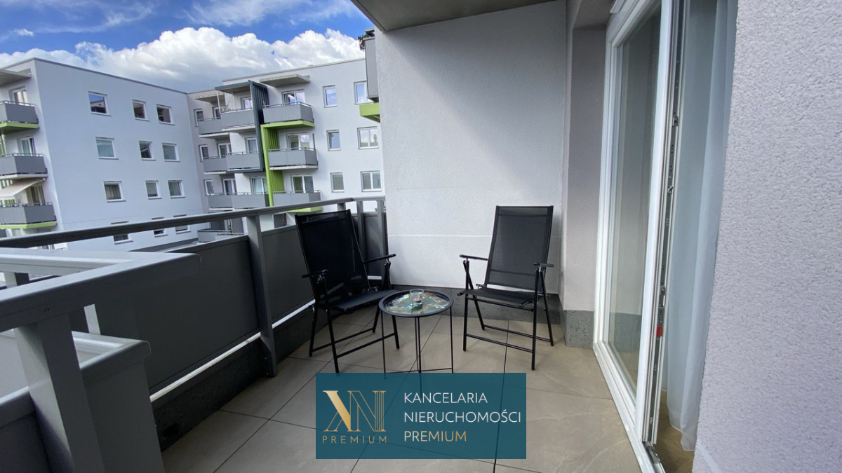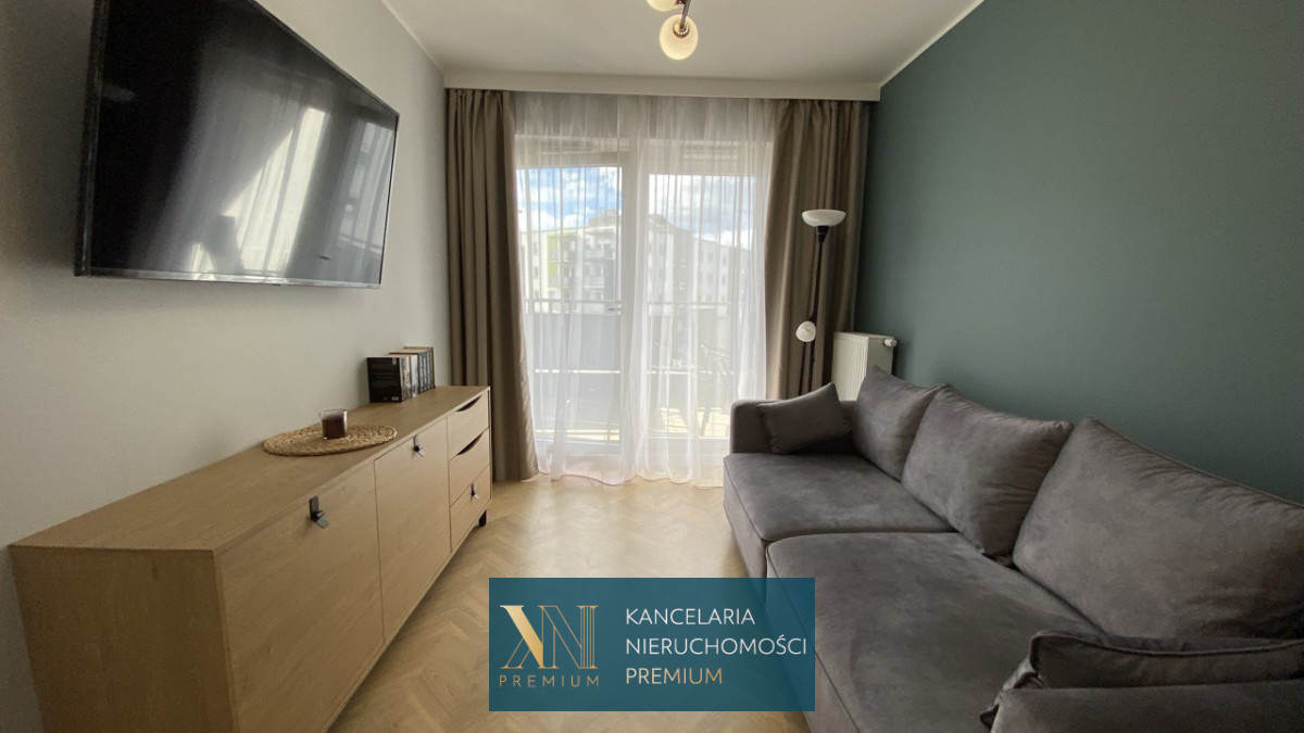 Mieszkanie 2 pokojowe o metrażu 48,04 m2, składa się z salonu z wyjściem na taras, sypialni, osobnej kuchni, łazienki oraz garderoby. Mieszkanie umeblowane i wyposażone w sprzęty AGD: pralka, piekarnik, płyta indukcyjna, lodówka, zamrażarka, zmywarka, okap, telewizor.