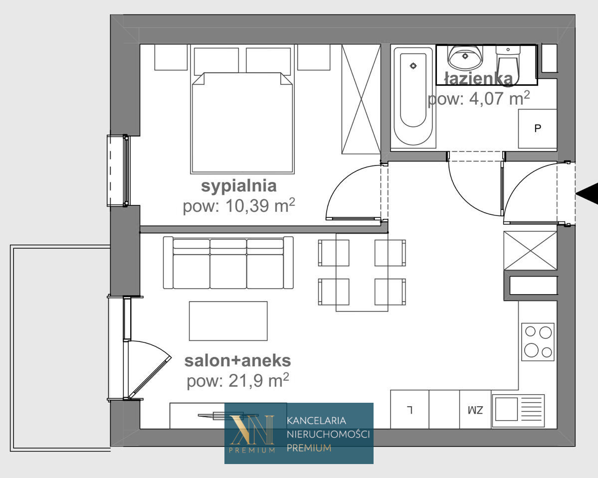 Mieszkanie o powierzchni 36,26 m2 składa się z: